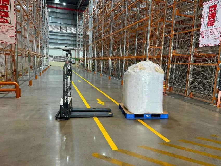 大手日用消費財(FMCG)産業会社は、パレット搬送ソリューションを導入し、従来の有人フォークリフトシステムを代替する方法を模索していました。目標は、人件費削減、搬送フローの最適化、労働安全性の向上です。IDEAグループは、最大1トンのパレット搬送能力を持つ自動搬送車(AGV/AMR)パレット搬送ソリューションを提供し、生産管理システムと完璧に統合しました。
