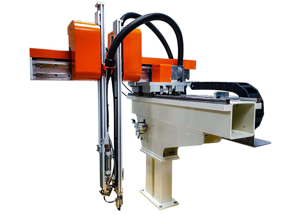 IROBOT 3軸ロボットは、射出成形機専用の自動化ソリューションであり、製品やランナーを金型から自動で取り出すよう設計されています。軽量構造、±0.05mmの高精度、そして安定した動作性能により、生産性を向上させ、人件費を削減し、製品品質を確保します。5軸絶対サーボ制御システムと直感的なタッチスクリーン操作パネルを搭載し、簡単な操作とスムーズな統合を実現。50トン以下の射出成形機に最適で、自動化生産における効率と信頼性を求める企業に理想的な選択肢です。