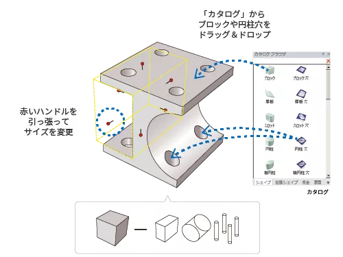 InventorやAutoCADなどの従来のソフトウェアと異なり、IRONCADでは3D形状をライブラリから作業空間へ直接ドラッグ&ドロップでき、初期段階で幾何拘束を設定する必要がありません。これにより、設計者はアイデアを素早く可視化し、柔軟に設計の調整が行えます。